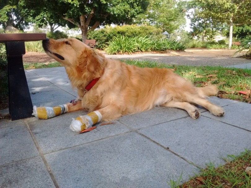 Calvin lost five toe nails during his flight from Melbourne to Brisbane. As per Jetpets, he might have got agitated during the one hour flight and tried to claw out of the crate he traveled in. I consider myself lucky to have got him back as he lost a lot of blood during the flight and another dog traveling with Jetpets passed away the same week. Calvin needed immediate medical attention on landing. I took him to an emergency Vet Hospital myself and Jetpets didn’t even bother to check on his condition until about 40 hours later. Calvin was in extreme pain for a week. Four weeks after the incident, he still has bandages on both his paws. He needs his wounds re-bandaged twice a week. Jetpets is paying for his vet bills. There has been no update from Qantas, the airlines that transported Calvin, despite registering a complaint.